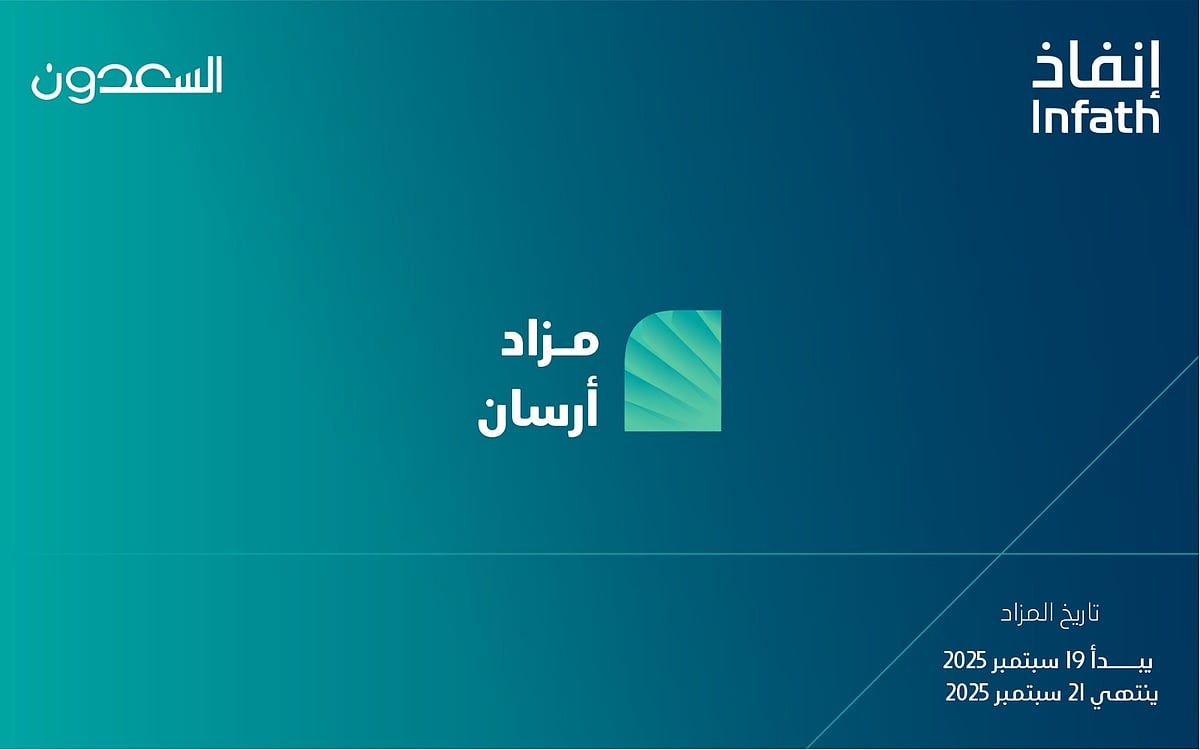 تعلن شركة السعدون العقارية وبإشراف مركز الإسناد والتصفية «إنفاذ» وبقرار من محكمة التنفيذ وبحكم من محكمة الأحوال الشخصية، عن إقامة مزاد “أرسان” إلكتروني وذلك من يوم الجمعة 19/9/2025 الساعة 1 مساء حتى يوم الأحد 21/9/2025 الساعة: 8:00 مساء عبر منصة وصلت للمزادات.