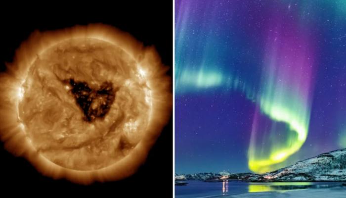 ويُطلق الثقب الذي يمتد لحوالي 500,000 كيلومتر، تياراً سريعاً من الرياح الشمسية باتجاه الأرض، مما قد يؤدي إلى حدوث عاصفة جيومغناطيسية معتدلة وعروض شفق قطبي رائعة.
