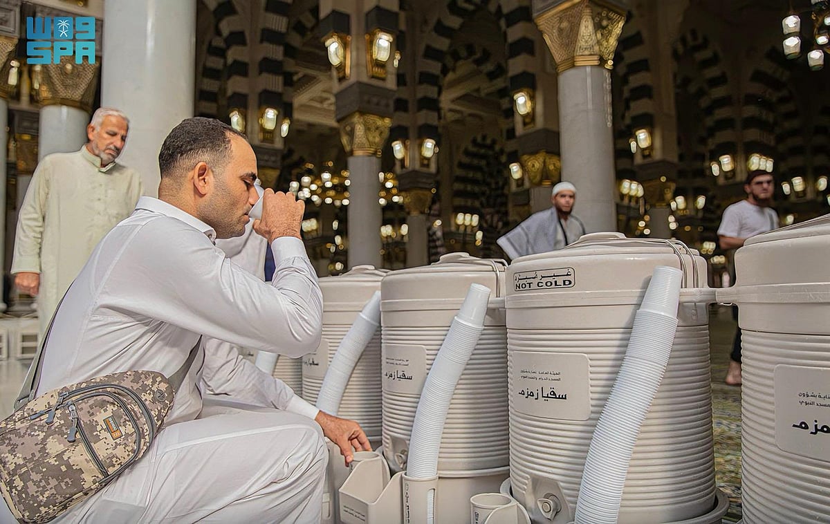 (183) طنًا من مياه زمزم لسقيا المصلين بالمسجد النبوي اليوم الجمعة
