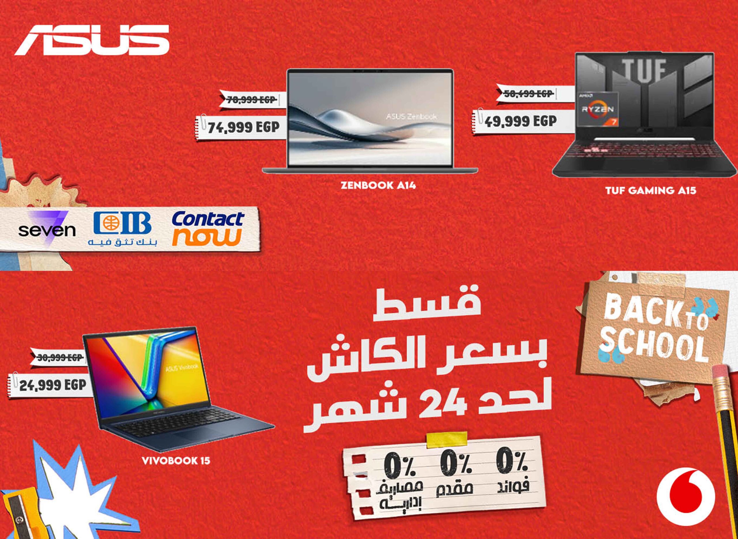 اشتري لابتوب Asus دلوقتي من ڤودافون e-shop فقط بأحسن سعر وتقسيط لحد ١٢ شهر بدون فوائد، مقدم، او مصاريف ادارية مع عرض لابتوبات Asus