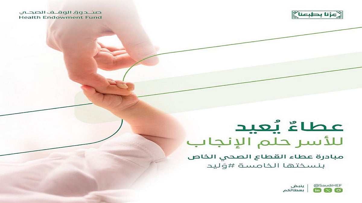 اختتم صندوق الوقف الصحي مبادرة عطاء القطاع الصحي الخاص في نسختها الخامسة تحت عنوان “وَليد”، والتي نُظمت تزامنًا مع احتفالات المملكة باليوم الوطني الـ95، بعد أن خُصصت هذا العام لدعم الأسر التي تواجه تحديات الإنجاب من خلال تدخلات طبية حديثة مثل أطفال الأنابيب والحقن المجهري وغيرها.