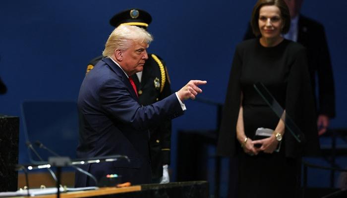 وقبل إلقائه كلمته في الجمعية العامة للأمم المتحدة، صعد ترامب خلف زوجته ميلانيا على سلم كهربائي سرعان ما توقّف.