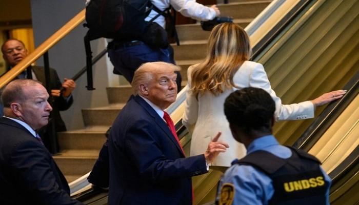 وقبل إلقائه كلمته في الجمعية العامة للأمم المتحدة، صعد ترامب خلف زوجته ميلانيا على سلم كهربائي سرعان ما توقّف.