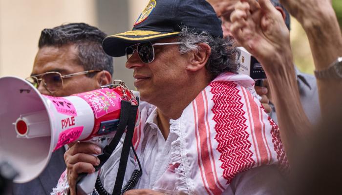 ودعا بيترو، في كلمة ألقاها أمام حشد من المتظاهرين المؤيدين للفلسطينيين أمام مقر الأمم المتحدة في مانهاتن، إلى تشكيل قوة مسلحة عالمية أولويتها القصوى هي تحرير الفلسطينيين، وأضاف “هذه القوة يتعين أن تكون أكبر من قوة الولايات المتحدة”.