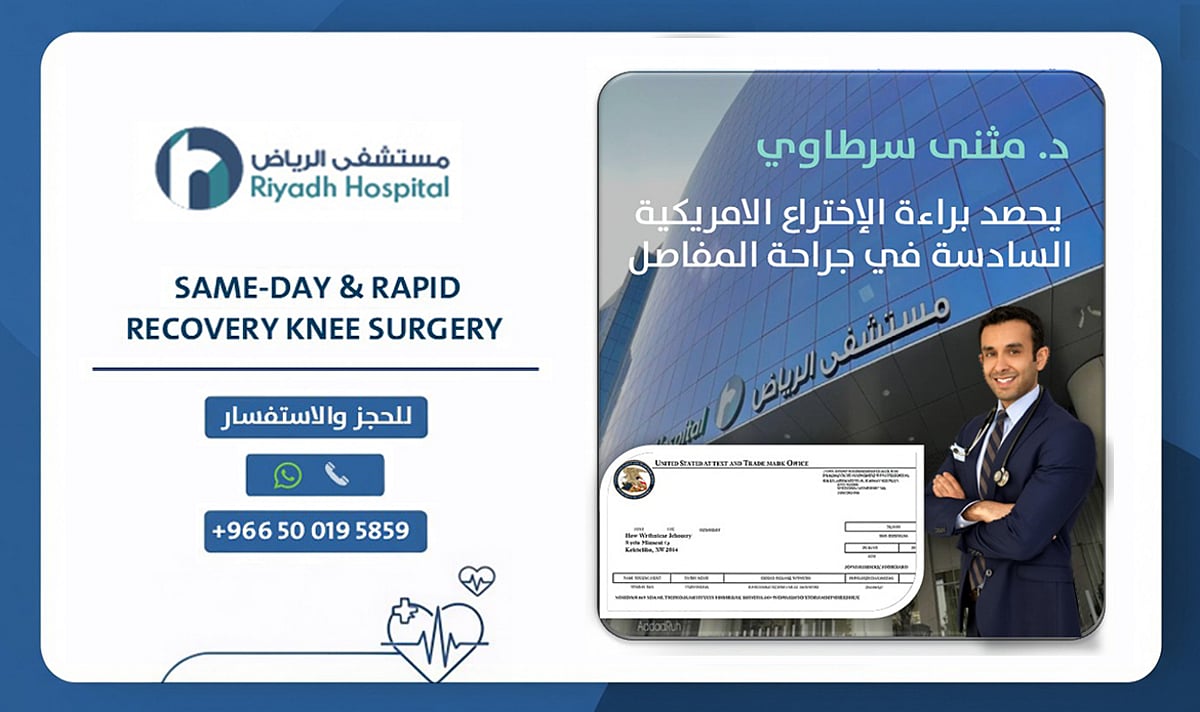 مستشفى الرياض يهنئ الدكتور مثنى السرطاوي بحصوله على براءة الاختراع الأمريكية السادسة في جراحة المفاصل