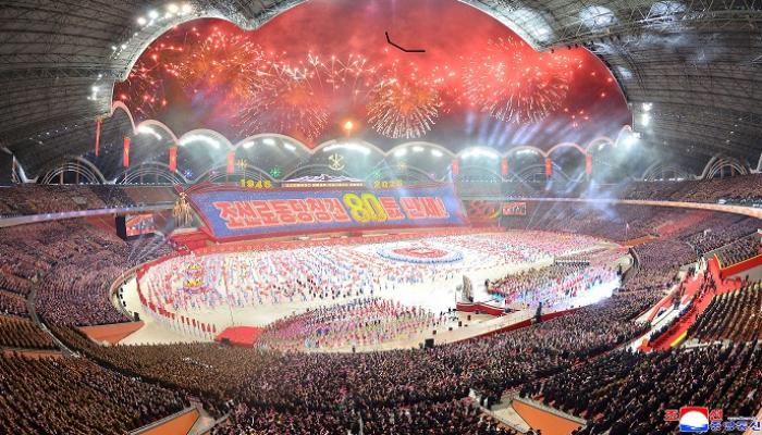 وأوردت وكالة الأنباء المركزية الكورية الرسمية في بيونغ يانغ أن “عرضا عسكريا ضخما أُقيم في ساحة كيم إيل سونغ الجمعة احتفالا بالذكرى الثمانين لتأسيس حزب العمال الكوري”.