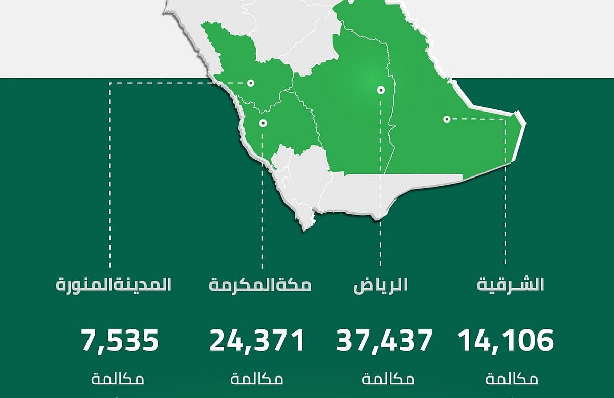 وأوضح المركز عبر حسابه الرسمي على منصة “إكس” أن المكالمات توزعت بين عدد من المناطق، حيث استقبلت منطقة الرياض 37,437 مكالمة، تلتها منطقة مكة المكرمة بـ 24,371 مكالمة، ثم المنطقة الشرقية بـ 14,106 مكالمات، في حين بلغ عدد المكالمات الواردة من منطقة المدينة المنورة 7,535 مكالمة.