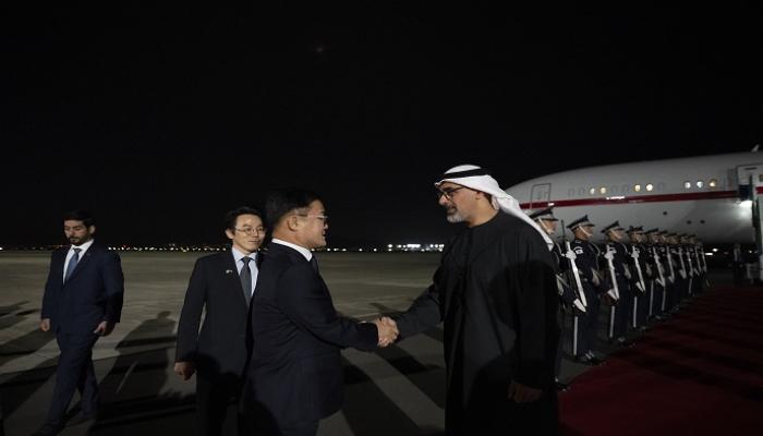 الشيخ خالد بن محمد بن زايد لدى وصوله إلى كوريا الجنوبية