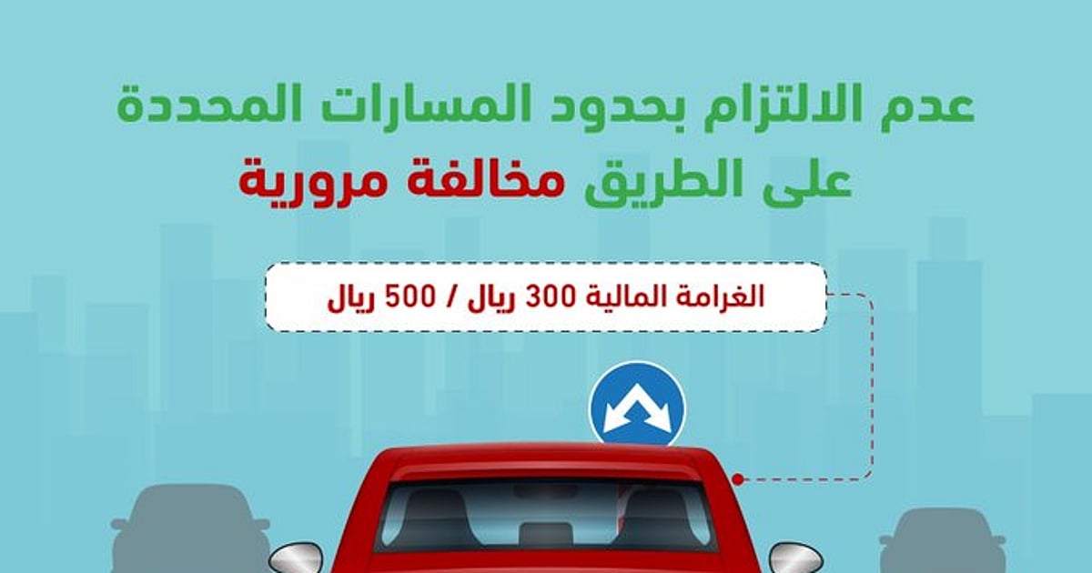 عدم الالتزام بالمسارات المحددة مخالفة مرورية وغرامتها تصل إلى 500 ريال