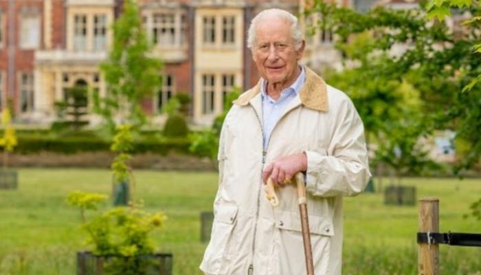 نشر قصر باكنغهام صورة جديدة للعاهل البريطاني، تشارلز الثالث يحمل عصا، احتفالا بعيد ميلاده الـ77 الذي يصادف اليوم الجمعة.