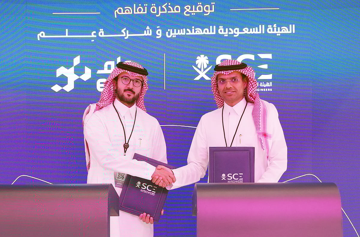 وقّع سعادة الأمين العام المكلف للهيئة السعودية للمهندسين المهندس فيصل اليمني مذكرة تفاهم مع سعادة نائب رئيس شركة “عِلم” الأستاذ عبدالعزيز آل الشيخ، وذلك على هامش مشاركة الهيئة في معرض “سيتي سكيب العالمي” المُقام خلال الفترة من 17 إلى 20 نوفمبر الجاري في مركز الرياض الدولي للمعارض والمؤتمرات.
