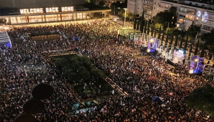 وقاد المظاهرة الرئيسية، التي تُقام في ساحة هابيما بتل أبيب، منتدى أكتوبر، وهو منتدى يمثل عائلات القتلى والجرحى في هجمات 7 أكتوبر/تشرين الأول 2023.