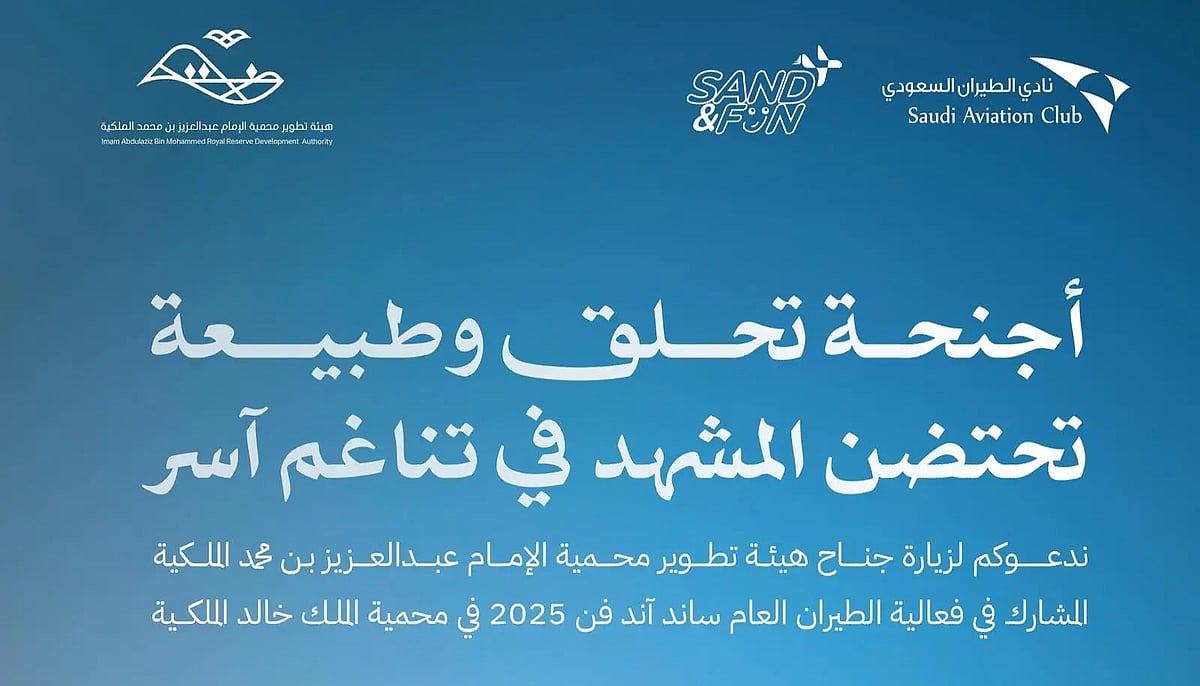 تشارك هيئة تطوير محمية الإمام عبدالعزيز بن محمد الملكية في معرض الطيران السعودي “ساند آند فن 2025″، الذي يُقام خلال الفترة من 25 وحتى 29 نوفمبر الجاري في مطار الثمامة بمحمية الملك خالد الملكية، وذلك ضمن جهودها لتعزيز حضور المحميات الطبيعية والتعريف بمبادراتها البيئية.