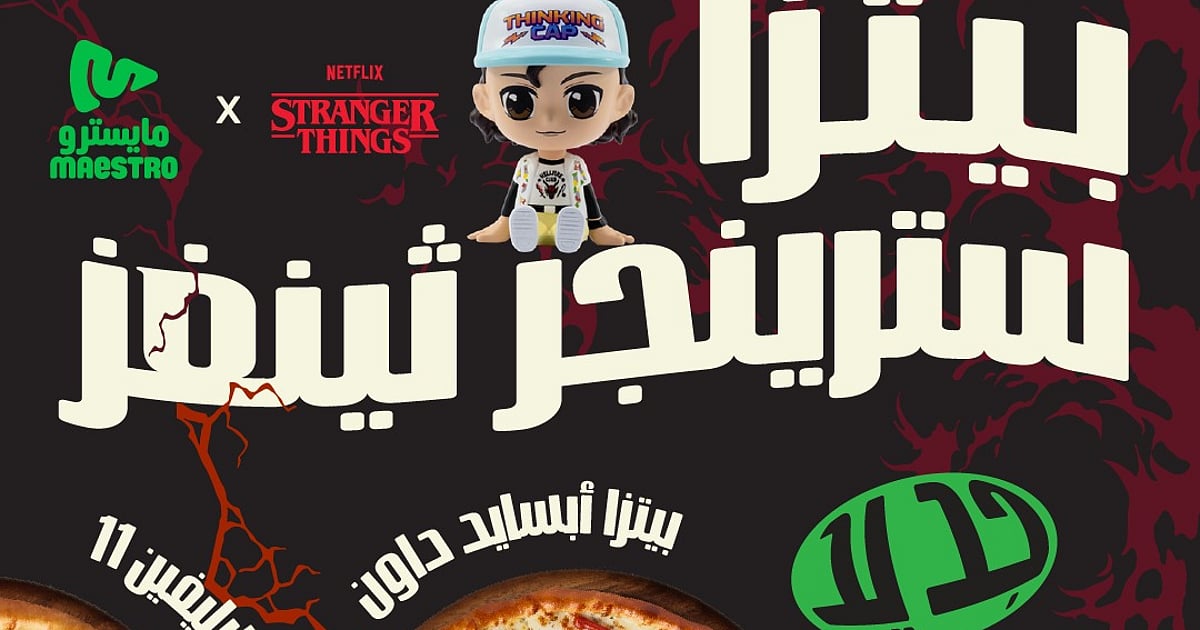 أعلنت سلسلة مطاعم مايسترو بيتزا عن تعاون جديد ومميز مع منصة نتفليكس بمناسبة طرح الموسم الجديد من المسلسل العالمي الشهير Stranger Things، وذلك عبر إطلاق قائمة محدودة مستوحاة بالكامل من عالم المسلسل وأجوائه الغامضة.