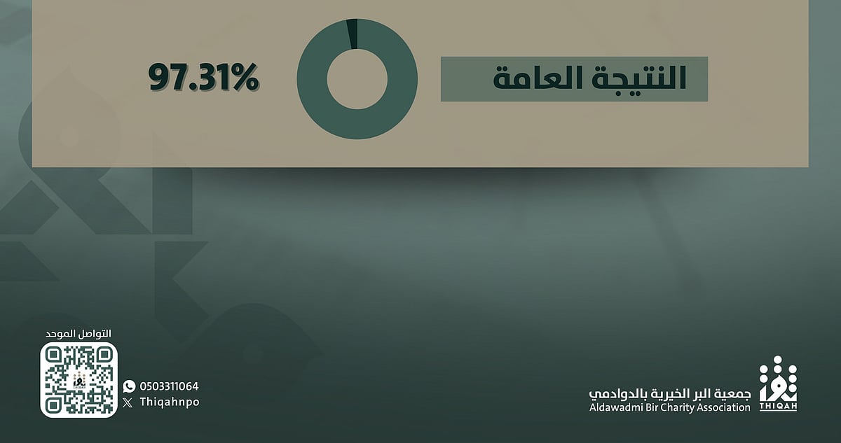 سجّلت جمعية البر الخيرية بمحافظة الدوادمي “ثقة” إنجازًا مؤسسيًا لافتًا، بتحقيقها نسبة 97.31% في التقييم العام للحوكمة الصادر عن المركز الوطني لتنمية القطاع غير الربحي لعام 2024، في تأكيد على التزامها بتطبيق أعلى معايير الحوكمة، والشفافية، والاستدامة المالية.