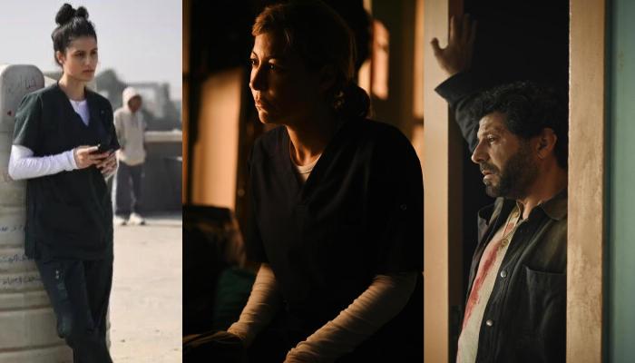 وأظهرت الصور أبطال العمل وهم يرتدون ملابس شخصياتهم، كما ظهر المخرج بيتر ميمي خلال تصوير المشاهد. وبدت منة شلبي في دور عضو طاقم طبي بمستشفى، لكنها تواجه وعكة صحية تجعلها تحتاج إلى مساعدة زملائها، بينما يظهر إياد نصار مصاباً وملابسه ملطخة بالدماء.