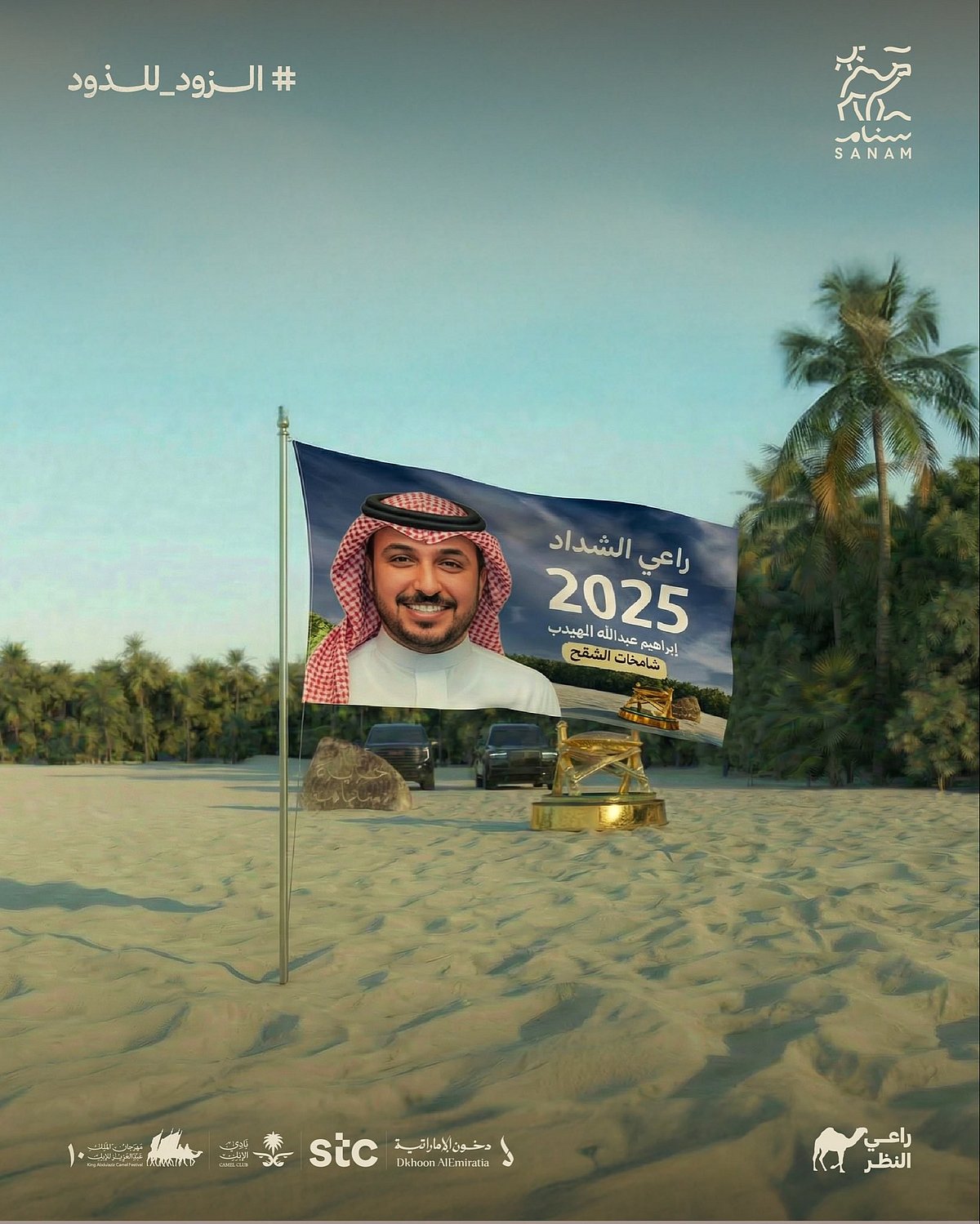 حقق رجل الأعمال إبراهيم بن عبدالله المهيدب جائزة النسخة الثالثة من منصة راعي النظر “سنام” بعد حصوله على أعلى النقاط في منافسة استمرت أكثر من 30 يوماً ضمن فعاليات مهرجان الملك عبدالعزيز للإبل في نسخته العاشرة.