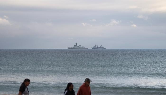 رست سفن حربية صينية وإيرانية قبالة القاعدة البحرية الرئيسية في جنوب أفريقيا، الخميس، قبيل مناورات عسكرية تمتد أسبوعا.