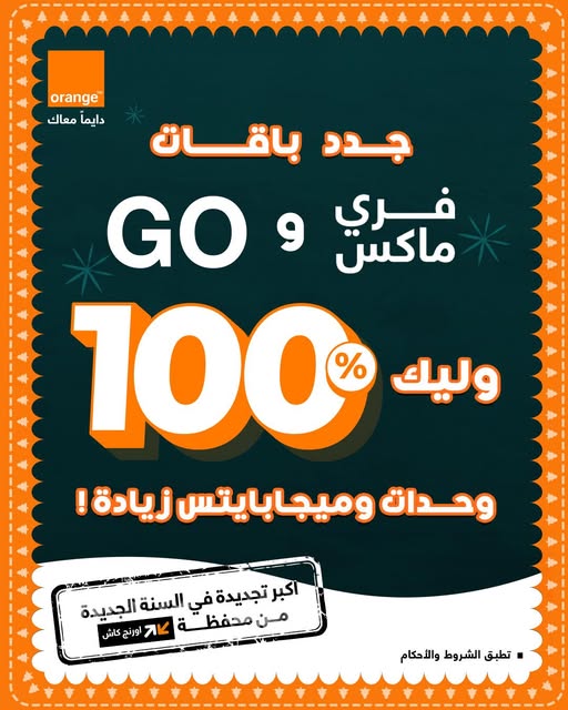 - و30% وحدات زيادة لما نجدد الباقة من محفظة اورنچ كاش ومميزات تانية كتير!