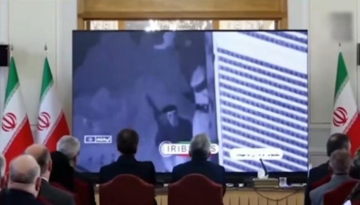 وأظهر مقطع فيديو دبلوماسيين يجلسون أمام شاشة عملاقة. وعرضت الخارجية الإيرانية أمامهم صورا قالت إنها توثق أعمال عنف قام بها متظاهرون.