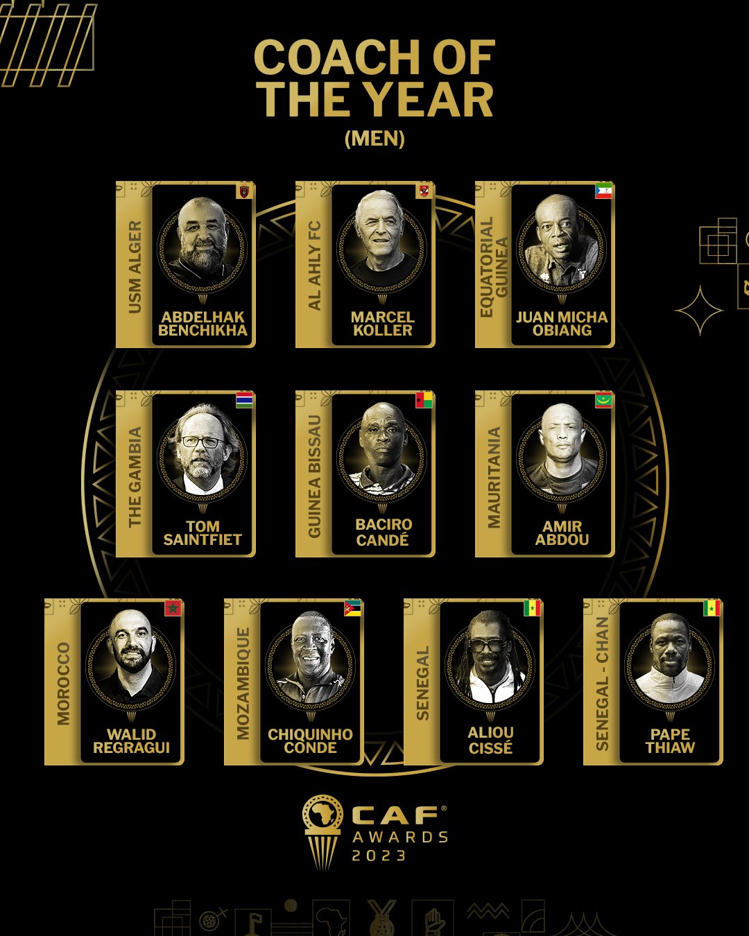 لكن القائمة النهائية لأفضل مدير فني في قارة أفريقيا 2023 ضمت الثلاثي أليو سيسيه، مدرب السنغال، ووليد الركراكي، مدرب المغرب، وعبد الحق بن شيخة، مدر اتحاد العاصمة الجزائري.