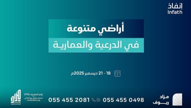أعلنت شركة السعدون العقارية عن مزاد شمس والذي سيقام يوم الثلاثاء الساعة 3:00 عصرا بتاريخ 4/11/2025 بموقع العقارات على طريق…