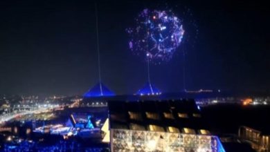 افتتاح المتحف المصري الكبير.. مجسمات ضوئية فرعونية تزين السماء (فيديو)