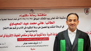 في إنجاز أكاديمي جديد، حصل الباحث موسى عبد الله عواف حمدي على درجة الدكتوراه بامتياز مع مرتبة الشرف الأولى من…