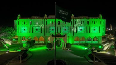 مبنى إمارة تبوك يتوشح بالأخضر احتفالاً باليوم الوطني الـ95